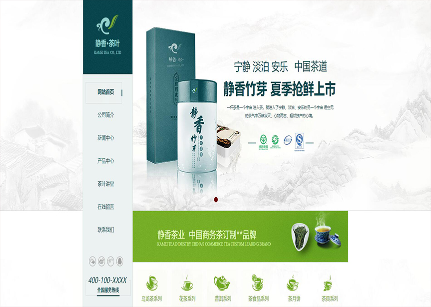 模板名稱:(帶手機版數據同步)自適應茶葉類綠色網站模板